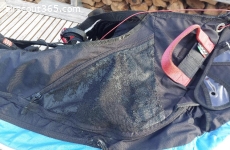 Netztasche aussen leicht beschädigt (Riss)