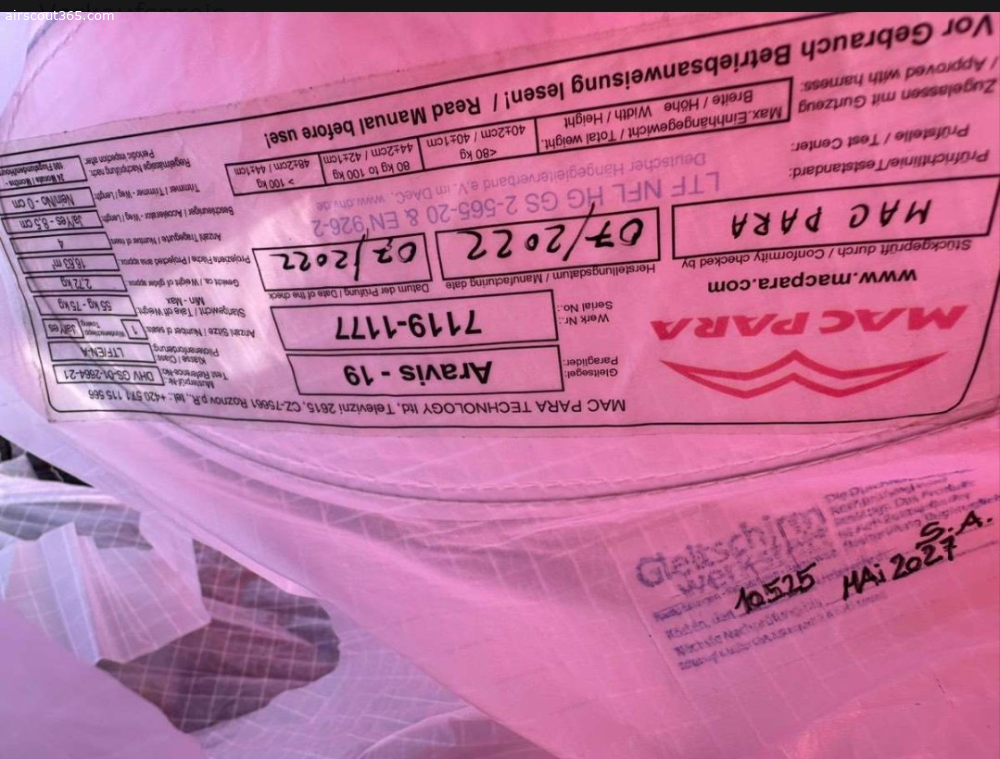Verkaufe meinen Hike & Fly Mac Para Aravis Größe 19 (55 - 75 kg) | LFT ABaujahr 07/2022, ca. 30 Flugstunden