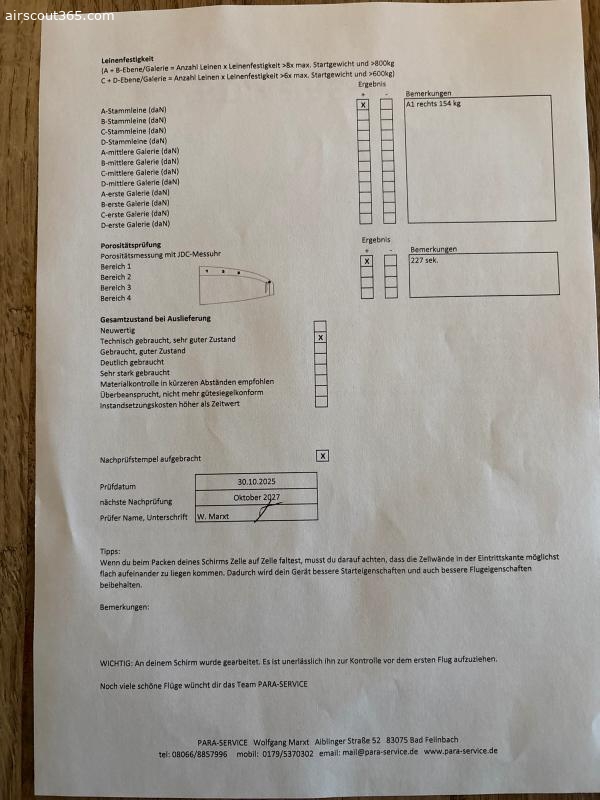 Der Check ist nagelneu und der Schirm wurde seitdem nicht mehr geflogen.