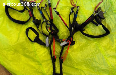 Sehr gepflegter Zustand, keine Crashs, sauber. Tuch, Leinen und Risers tiptop. Es gibt einen minikleinen Patch (ca 1€ Münzen groß), quasi unsichtbar, siehe letztes Foto. Sonst makellos.